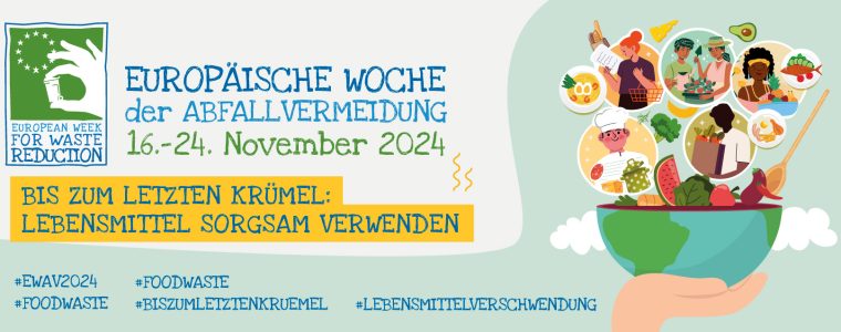 Vom 16. bis 24. November 2024 findet die Europäische Woche der Abfallvermeidung (EWAV) statt. Es handelt sich um Europas größte Kommunikationskampagne für Abfallvermeidung. Tausende öffentlicher Aktionen zeigen dann europaweit Alternativen zur Wegwerfgesellschaft und Ressourcenverschwendung auf.