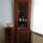 Zwei hohe Eckvitrinen aus italienischem Kirschbaumholz sowie ein Sofabeistelltisch, eine Kommode und eine halbhohe CD-Säule zu verschenken. Siehe Fotos. Ohne Inhalt.