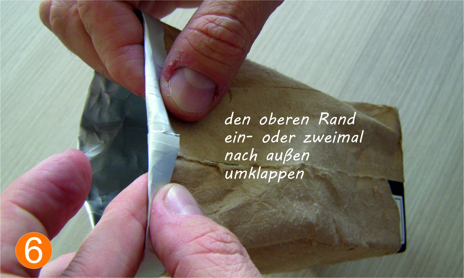 Schritt 6: Anschließend klappst du den oberen Rand ein- oder zweimal nach außen um.