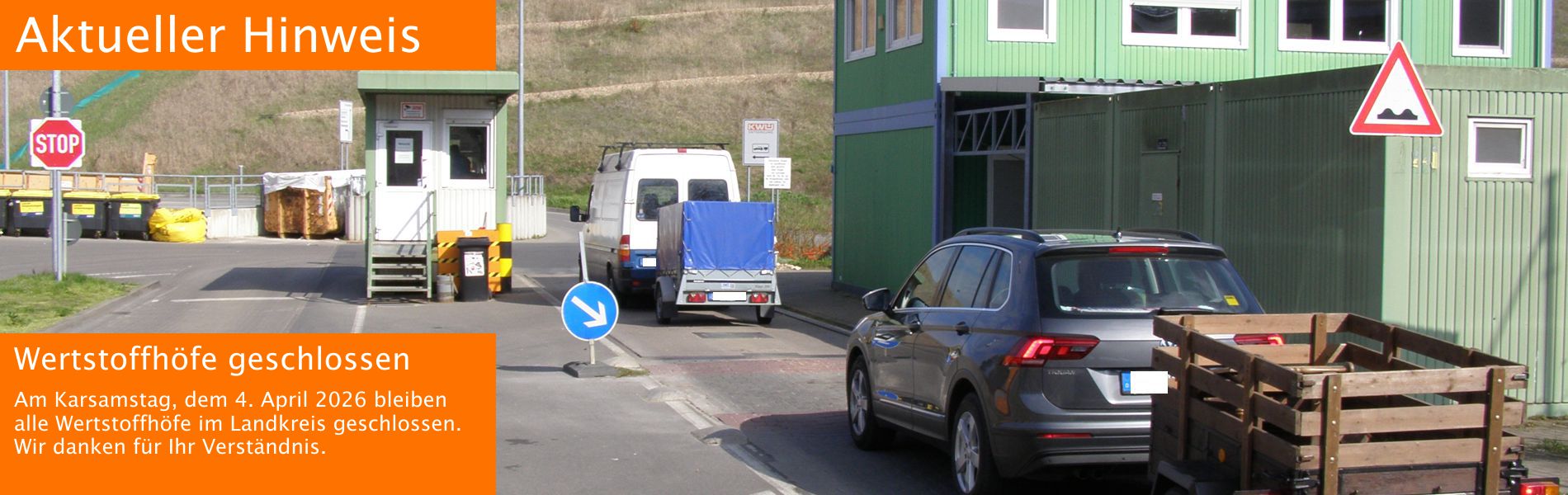 Alle Wertstoffhöfe sind am 4. April, 2. Mai sowie am 24. und 31. Dezember 2026 geschlossen.